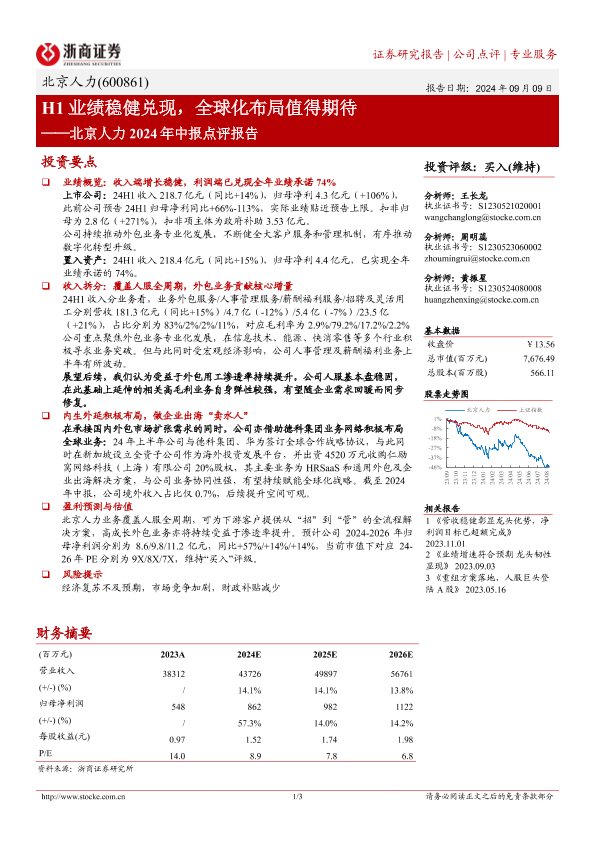 【浙商证券】【20240909】北京人力2024年中报点评报告_H1业绩稳健兑现_全球化布局值得期待-3页