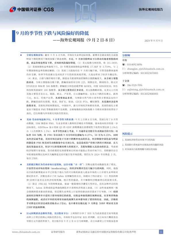 【银河证券】【20240909】海外宏观周报:9月的季节性下跌与风险偏好的降低-12页