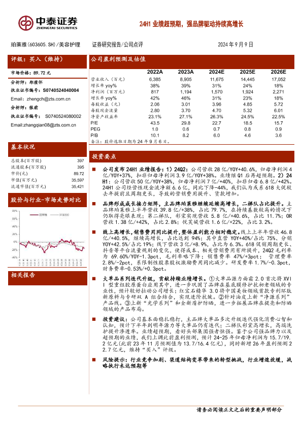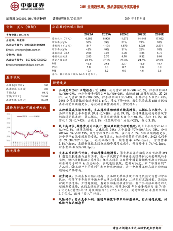 【中泰证券】【20240909】20240909-中泰证券-珀莱雅-603605.SH-24H1业绩超预期_强品牌驱动持续高增长-4页