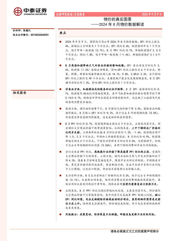 【中泰证券】【20240909】2024年8月物价数据解读_物价的真实图景-10页