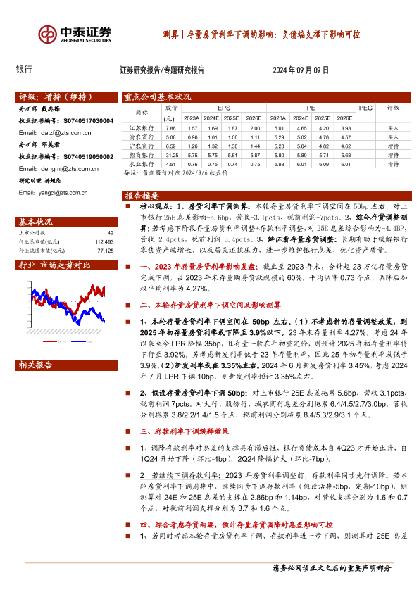 【中泰证券】【20240909】测算|存量房贷利率下调的影响:负债端支撑下影响可控-15页