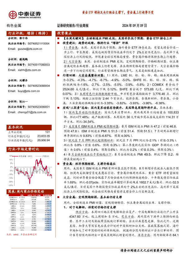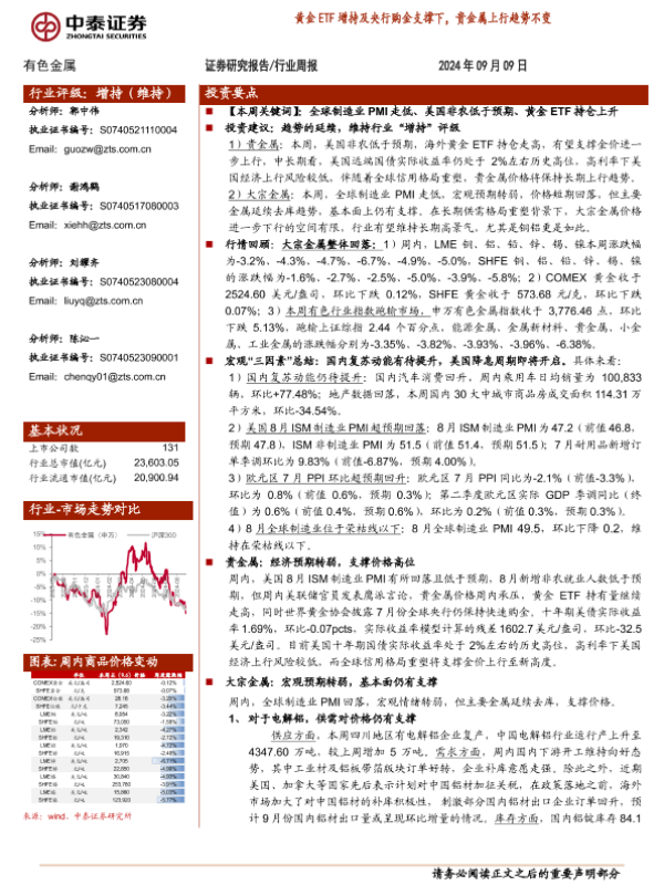【中泰证券】【20240909】黄金ETF增持及央行购金支撑下_贵金属上行趋势不变-39页
