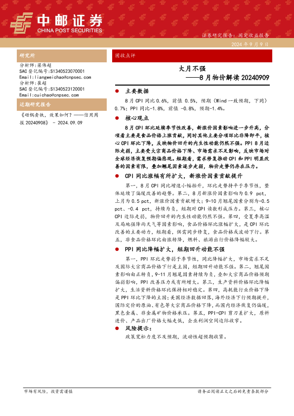 【中邮证券】【20240909】大月不强——8月物价解读-14页