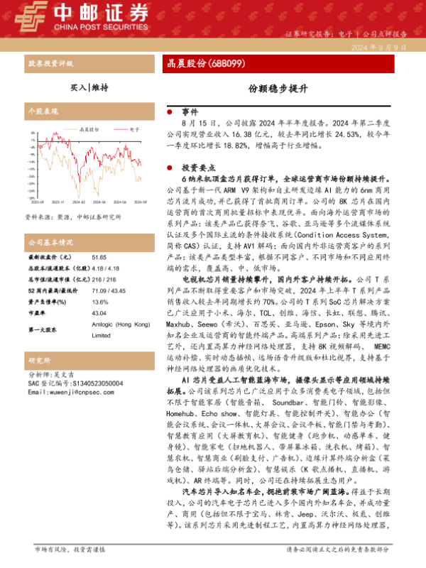 【中邮证券】【20240909】晶晨股份-份额稳步提升-5页