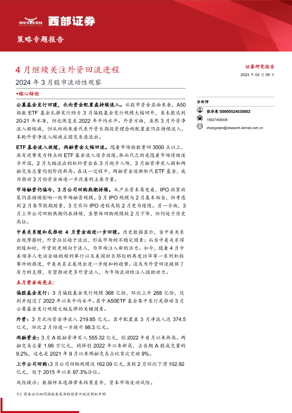 【西部证券】【20240408】2024年3月股市流动性观察:4月继续关注外资回流进程-19页