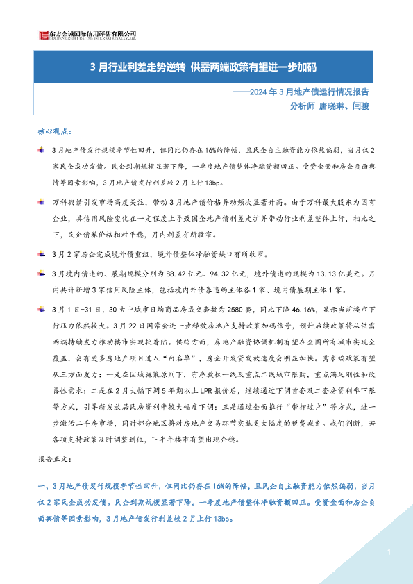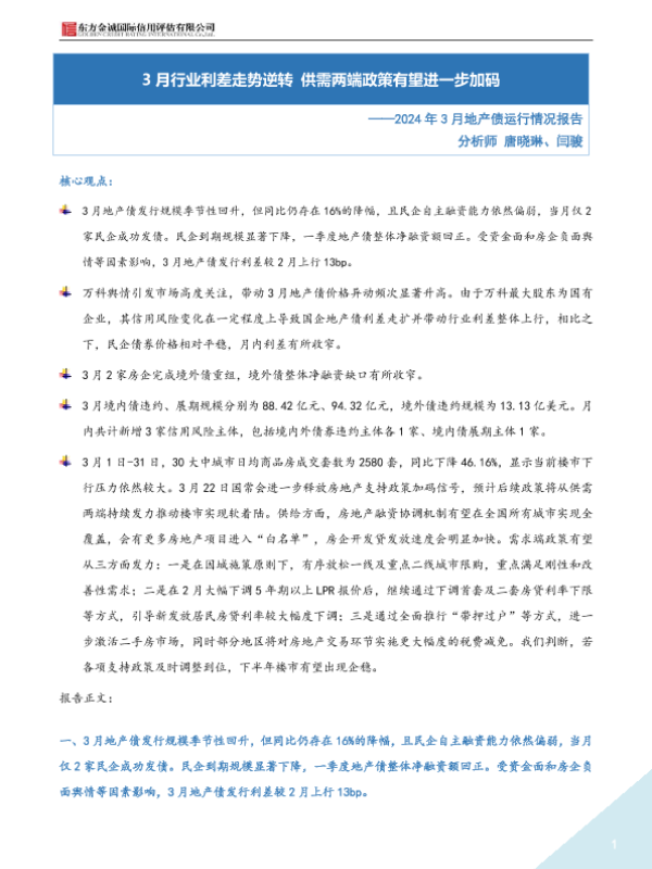 【东方金诚】【202403】2024年3月地产债运行情况报告-5页