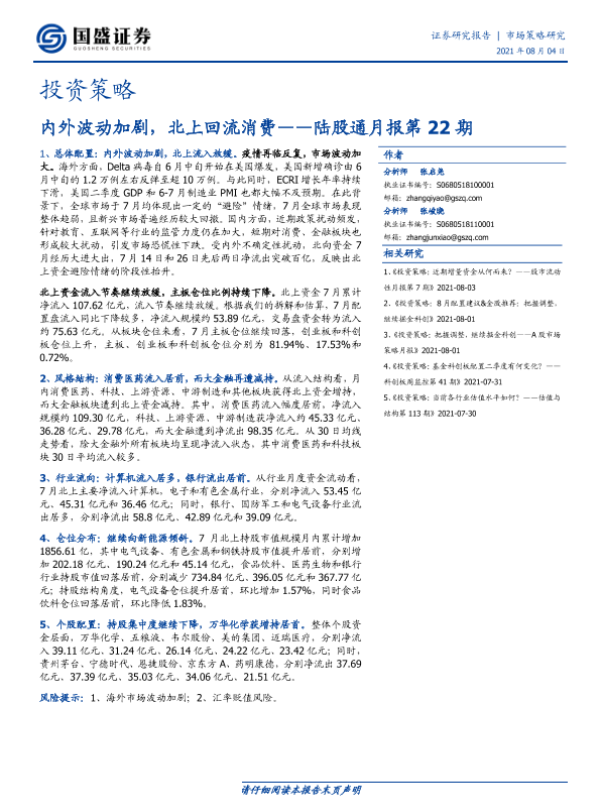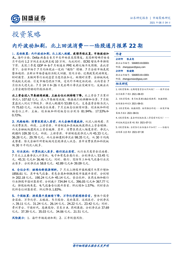 【国盛证券】【20210804】陆股通月报第22期:内外波动加剧,北上回流消费-16页