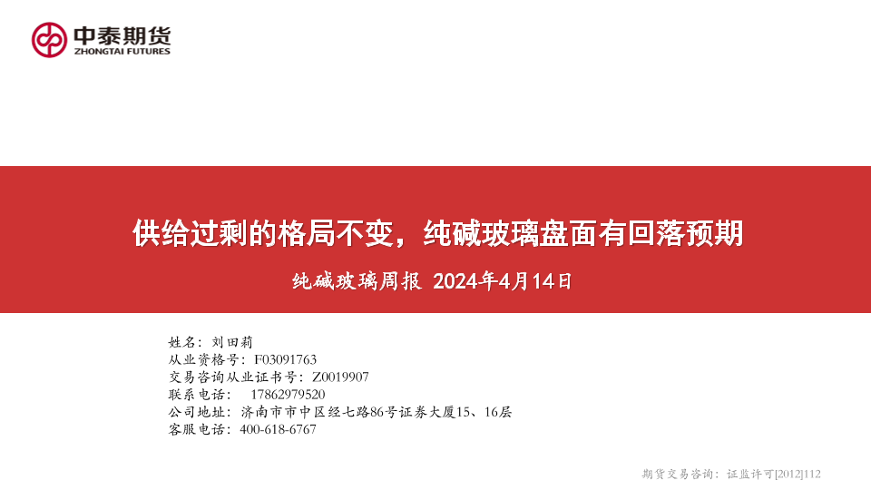 【中泰期货】【20240414】供给过剩的格局不变,纯碱玻璃盘面有回落预期-31页