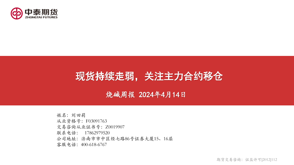 【中泰期货】【20240414】烧碱周报_现货持续走弱_关注主力合约移仓-21页