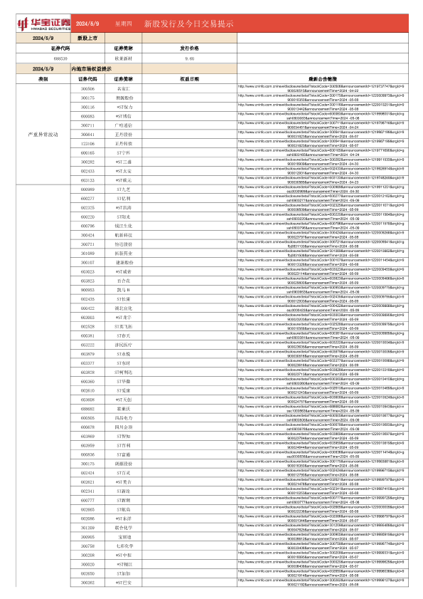 【华宝证券】【20240509】20240509-华宝证券-新股发行及今日交易提示-7页