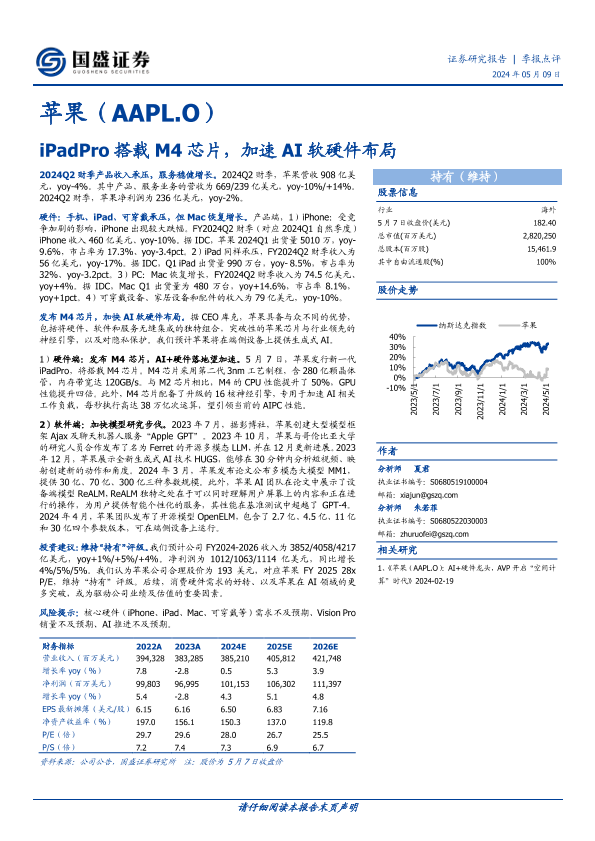AI技术 iPadPro M4芯片 硬件与软件集成 苹果财报