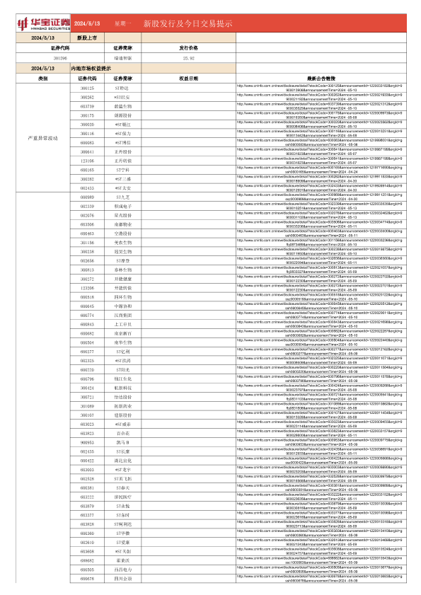 【华宝证券】【20240513】20240513-华宝证券-新股发行及今日交易提示-6页