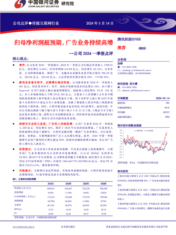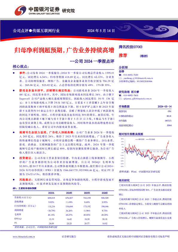 【银河证券】【20240514】归母净利润超预期,广告业务持续高增 -- 公司2024一季报点评-3页