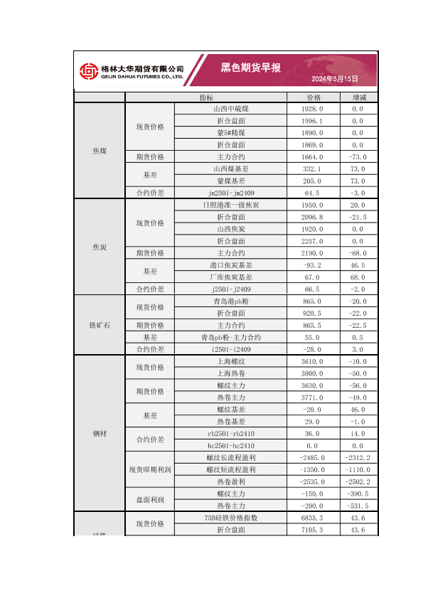 【格林大华期货】【20240515】黑色期货早报2024年5月15日-3页