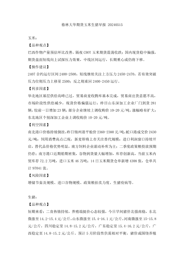 【格林大华期货】【20240515】格林大华期货玉米生猪早报 20240515-3页