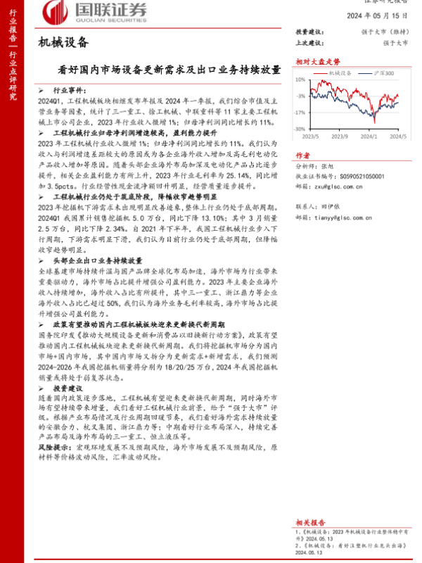 【国联证券】【20240515】机械设备:看好国内市场设备更新需求及出口业务持续放量-7页