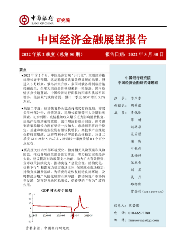 【中国银行研究院】【20220330】中国银行中国经济金融展望报告(2022年第2季度):政策发力经济“开门红”,恢复持续性有待观察-56页