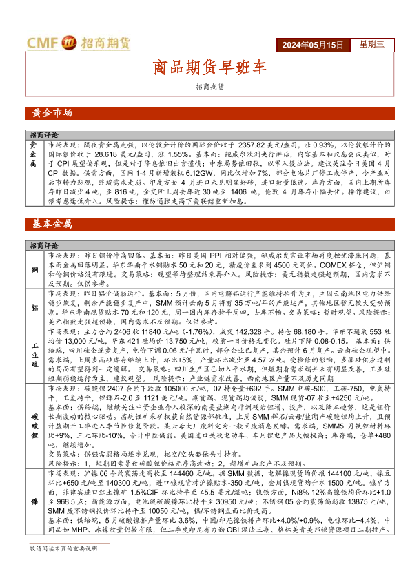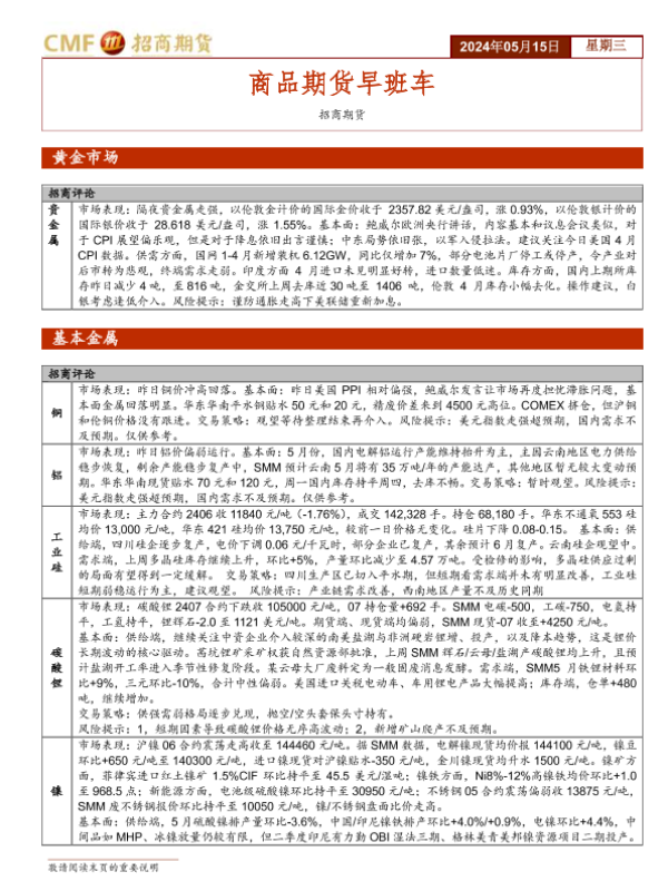 【招商期货】【20240515】20240515-招商期货-商品期货早班车-5页