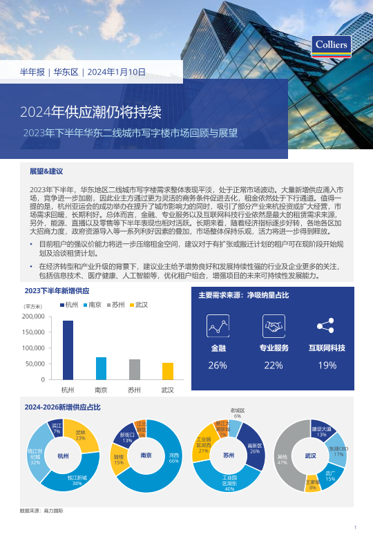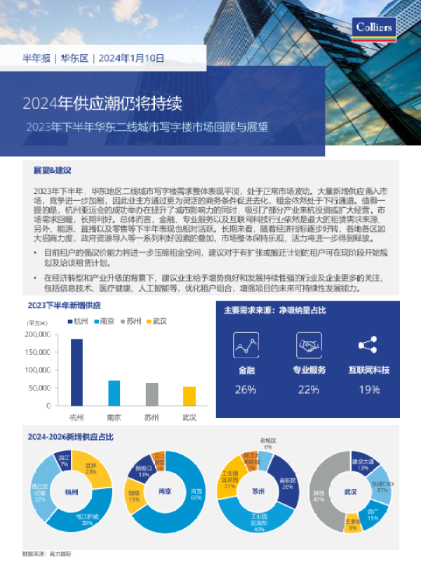 【高力国际】【2023】2023年下半年华东南京、杭州、苏州、武汉写字楼办公楼出租租金市场分析报告与发展前景趋势展望-6页