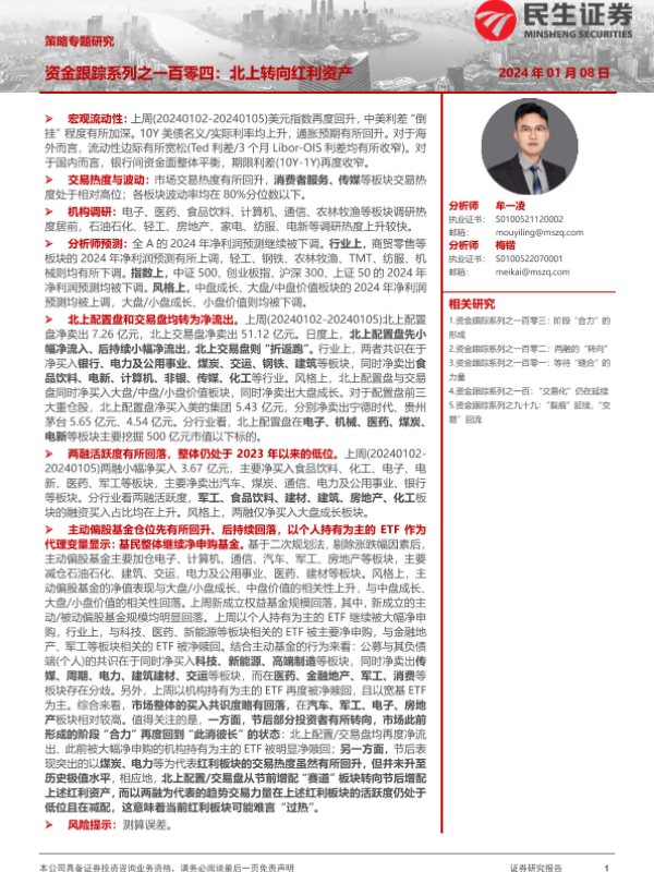 【民生证券】【20240108】资金跟踪系列之一百零四:北上转向红利资产-35页