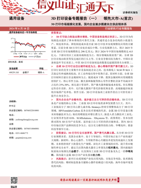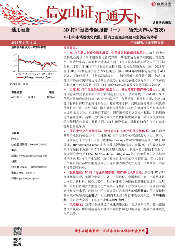【山西证券】【20240618】3D打印设备专题报告(一):3D打印市场规模化发展,国内企业逐步搭建自主供应链体系-43页