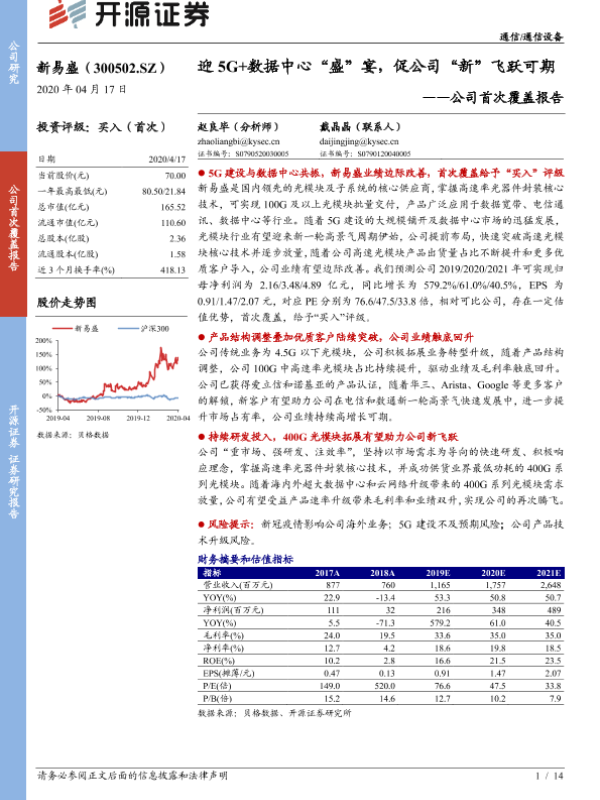 5G建设 光模块 数据中心 新易盛 证券分析