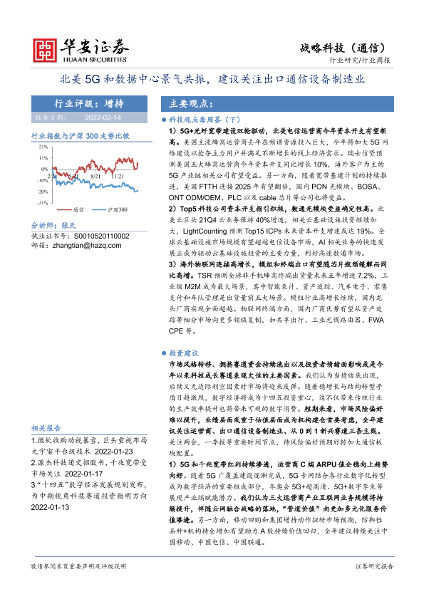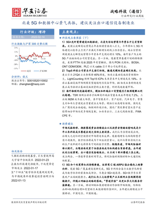【华安证券】【20220214】北美5G和数据中心景气共振,建议关注出口通信设备制造业-19页