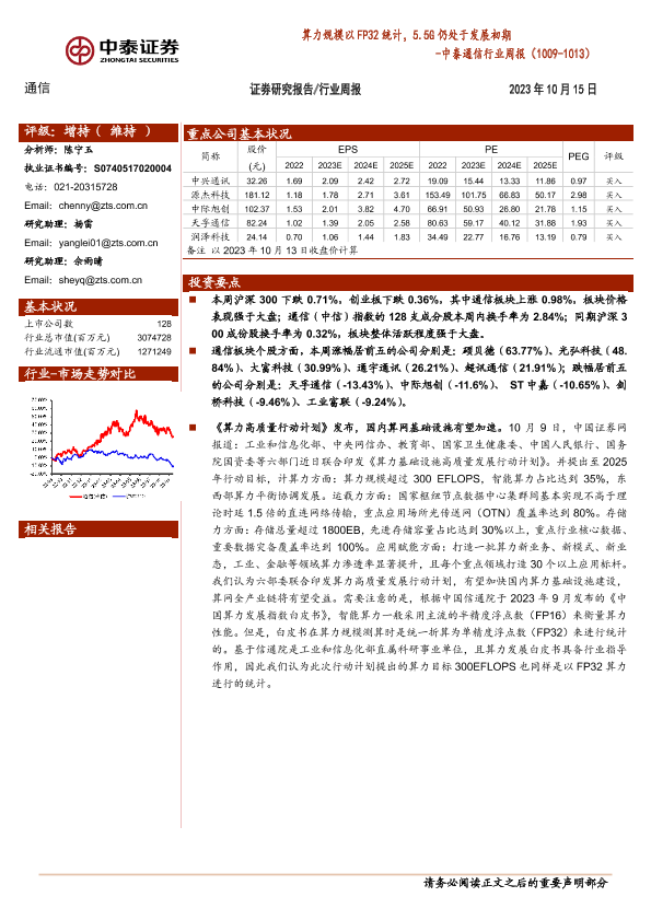 【中泰证券】【20231015】2023年09月23日更新-通信-行业周报:算力规模以FP32统计,5.5G仍处于发展初期-13页