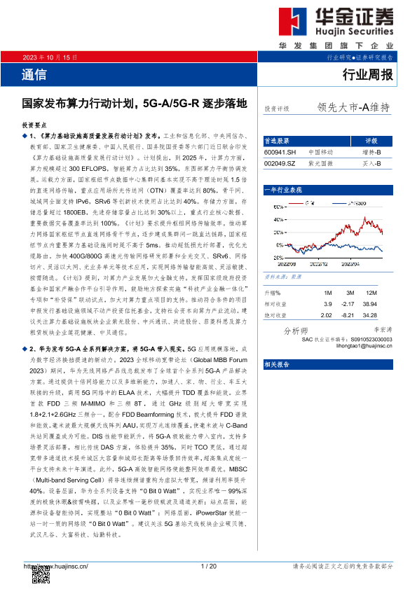 【华金证券】【20231005】通信-行业周报:国家发布算力行动计划,5G-A/5G-R逐步落地-20页