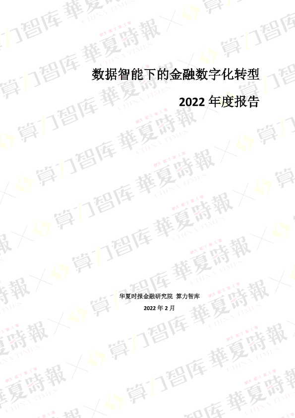【华夏时报金融研究院算力智库】【202202】数据智能下的金融数字化转型2022年度报告-70页