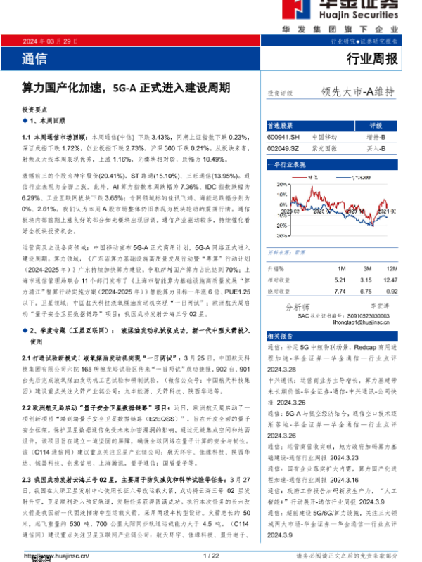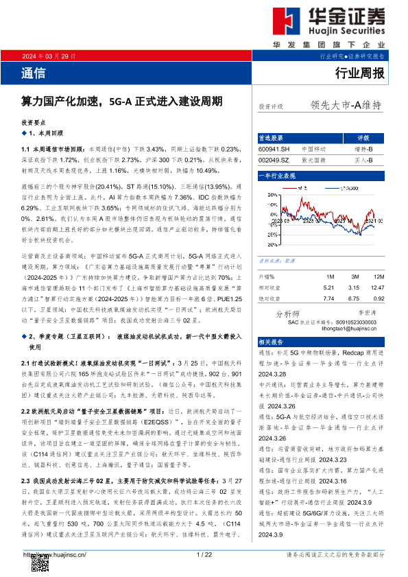 【华金证券】【20240329】2024年01月03日更新-通信行业周报:算力国产化加速,5G-A正式进入建设周期-22页