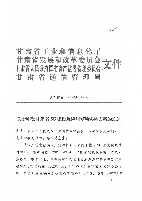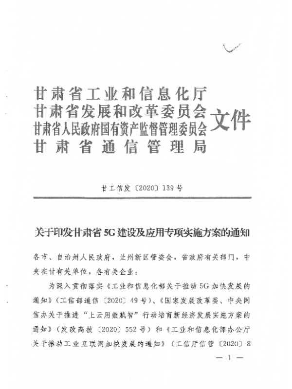 5G建设 信息基础设施 工业互联网 数字经济 甘肃省