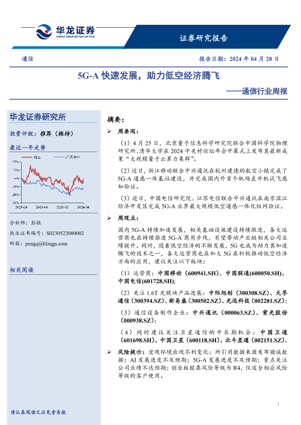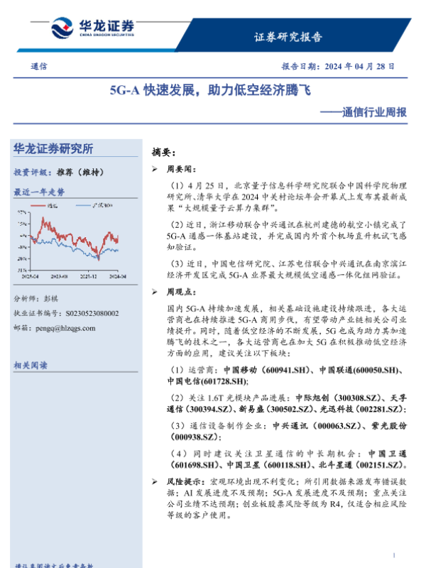 【华龙证券】【20240428】5G-A快速发展,助力低空经济腾飞-7页