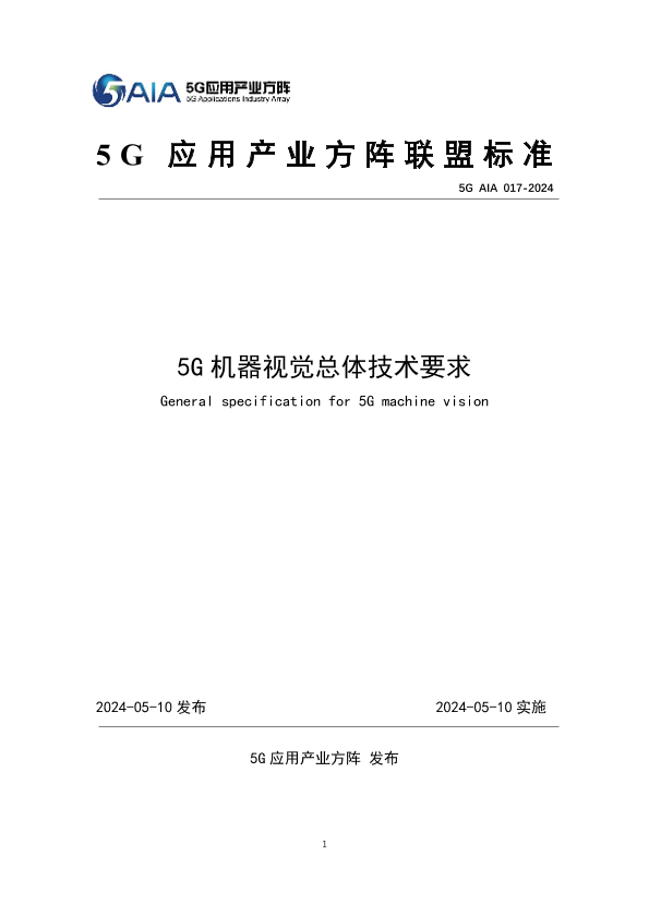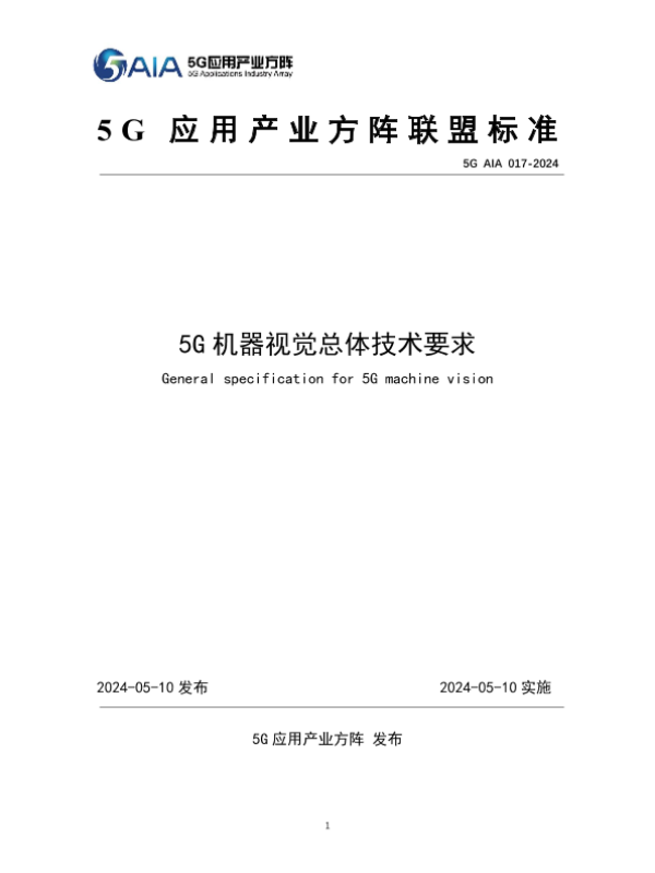 5G技术 工业制造 智能系统 机器视觉 联盟标准