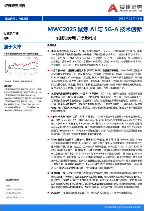 【爱建证券】【20250316】爱建证券电子行业周报:MWC2025聚焦AI与5G-A技术创新-14页