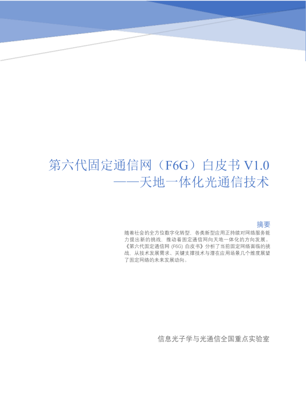 【北京邮电大学】【2023】第六代固定通信网(F6G)白皮书 V1.0 ——天地一体化光通信技术-32页