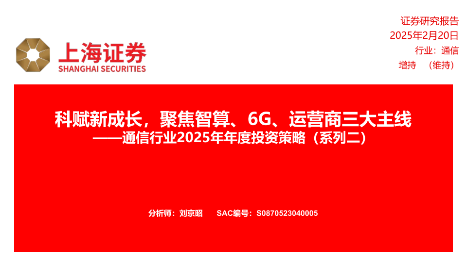 【上海证券】【20250224】通信行业2025年年度投资策略(系列二):科赋新成长,聚焦智算、6G、运营商三大主线-34页