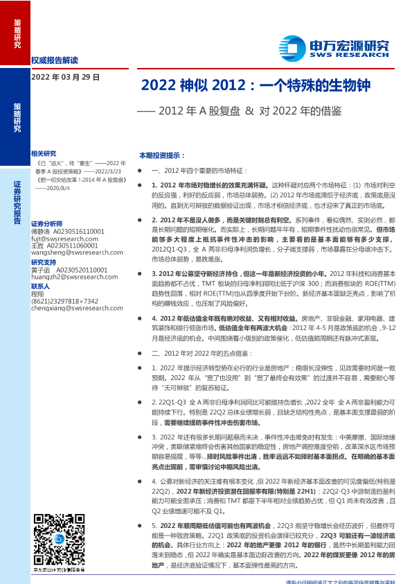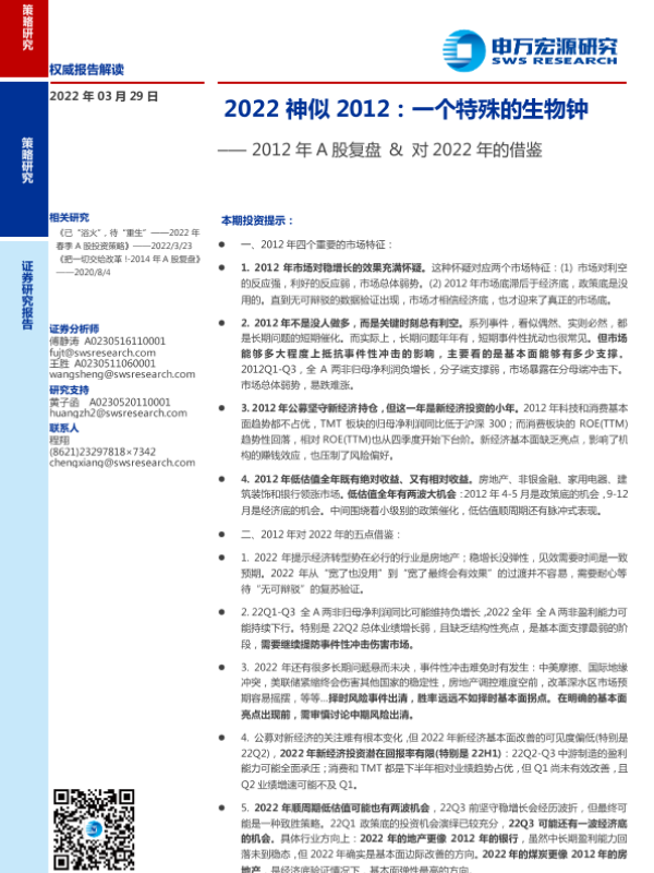 【申万宏源】【20220329】2012年A股复盘&对2022年的借鉴:2022神似2012,一个特殊的生物钟-33页