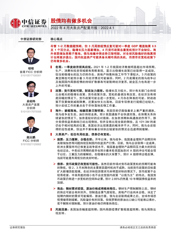 【中信证券】【20220401】2022年4月大类资产配置月报:股债均有做多机会-15页