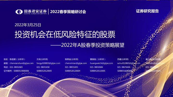 【国泰君安证券】【20220325】2022年A股春季投资策略展望:投资机会在低风险特征的股票-47页