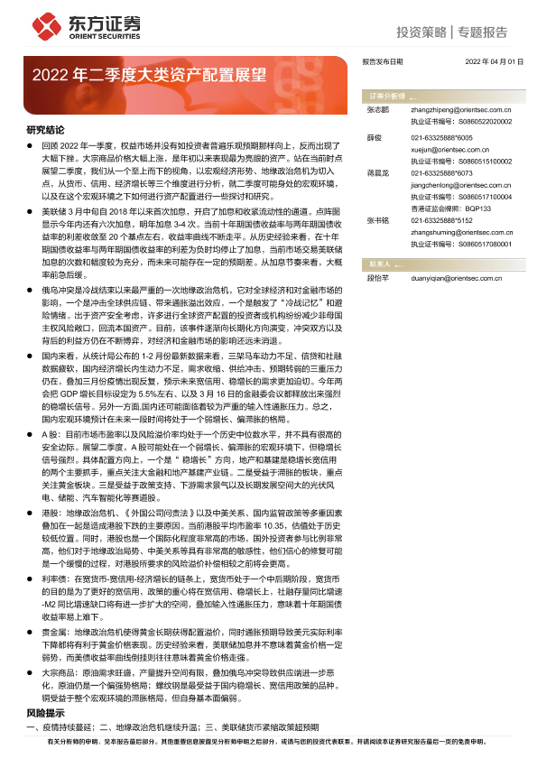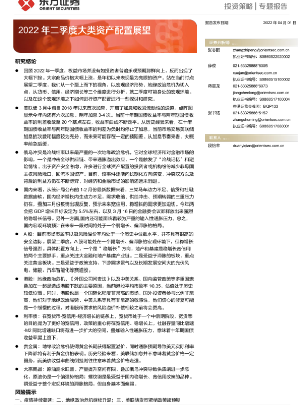 【东方证券】【20220401】2022年二季度大类资产配置展望-29页