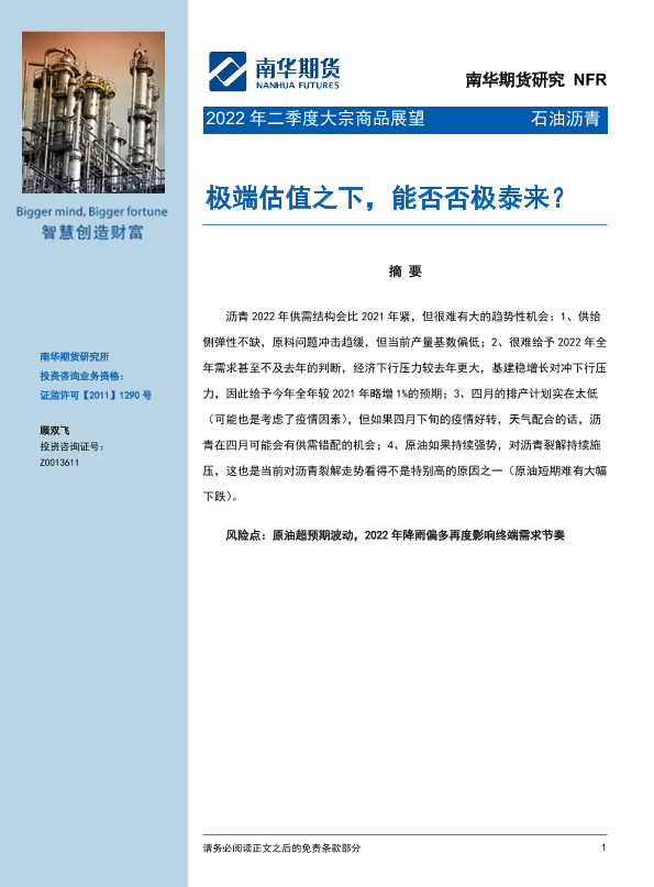【南华期货】【20220330】2022年二季度大宗商品石油沥青展望:极端估值之下,能否否极泰来?-21页