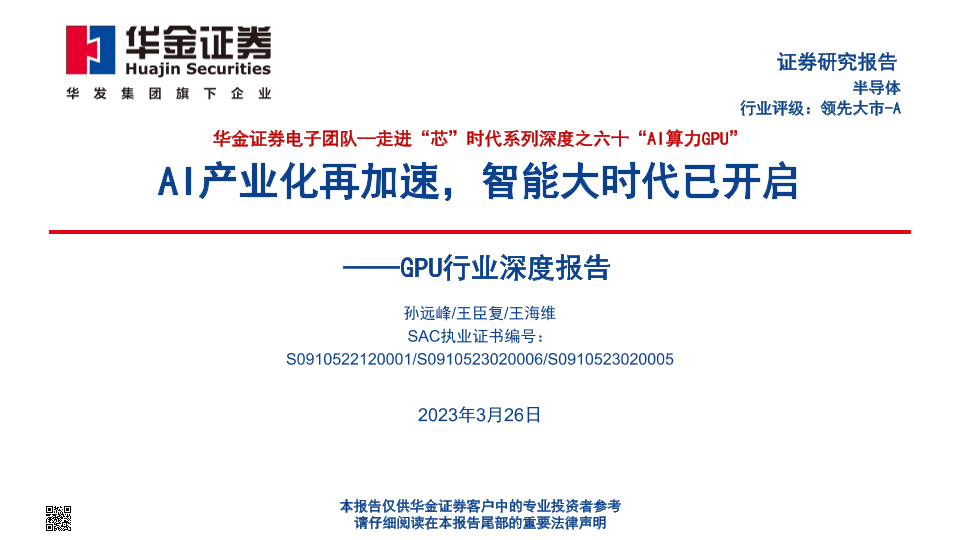 【华金证券】【20230327】GPU行业深度报告-走进“芯”时代系列深度之六十“AI算力GPU”-AI产业化再加速-智能大时代已开启-122页