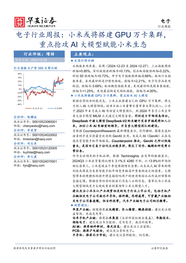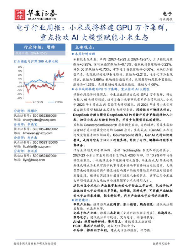 【华安证券】【20250208】2025年02月08日更新-【华安证券】电子行业周报:小米或将搭建GPU万卡集群,重点抢攻AI大模型赋能小米生态-15页