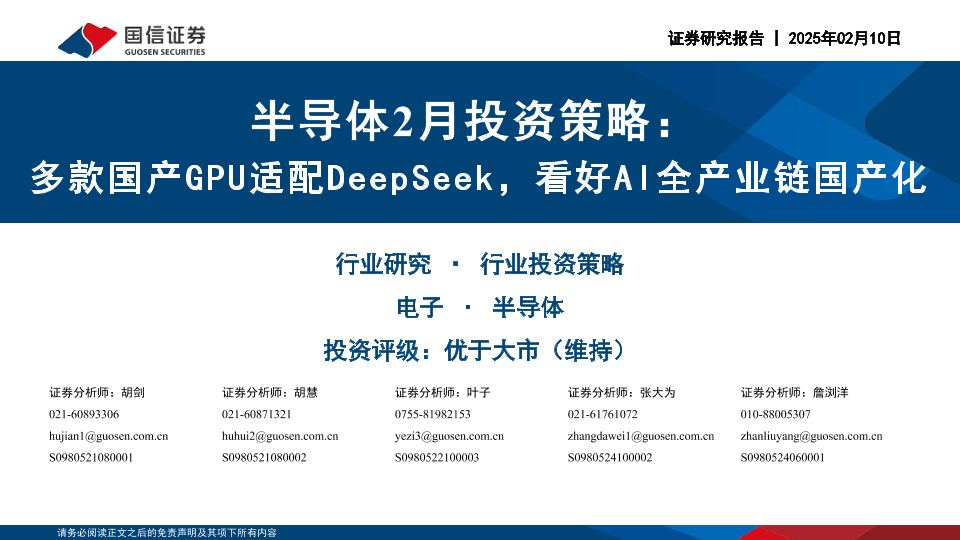 【国信证券】【20250219】2025年02月19日更新-【国信证券】半导体行业2月投资策略:多款国产GPU适配DeepSeek,看好AI全产业链国产化-20页