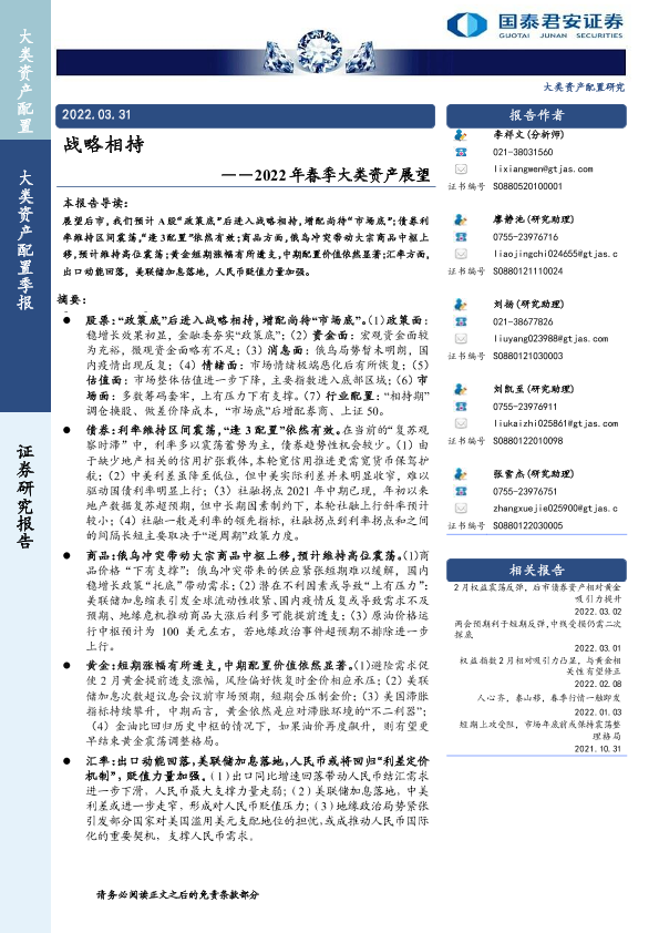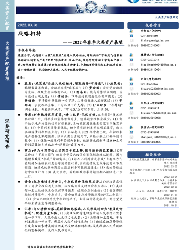 【国泰君安证券】【20220331】2022年春季大类资产展望:战略相持-31页