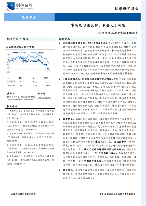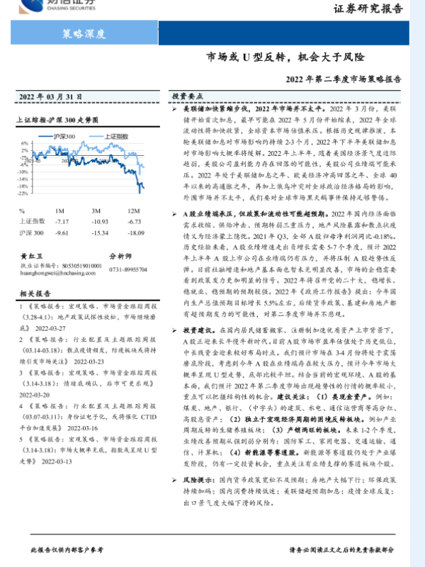 【财信证券】【20220331】2022年第二季度市场策略报告:市场或U型反转,机会大于风险-33页