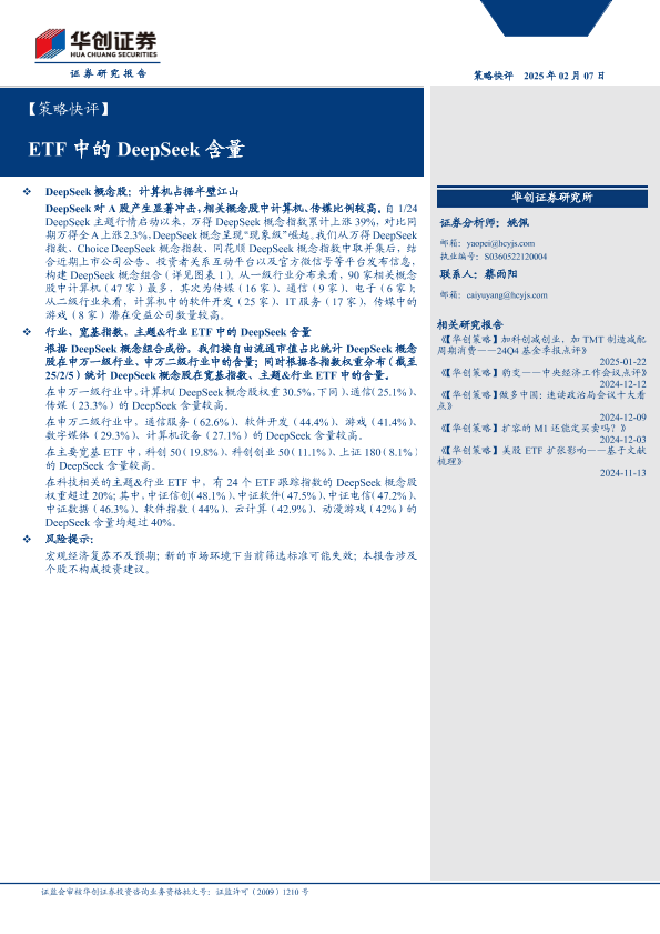 【华创证券】【20250212】2025年02月12日更新-【华创证券】【策略快评】ETF中的DeepSeek含量-10页