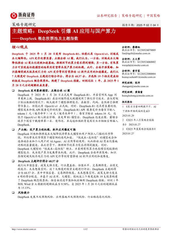 【浙商证券】【20250204】2025年02月13日更新-【浙商证券】策略专题研究-主题策略:DeepSeek引爆AI应用与国产算力,DeepSeek+概念股票池及主题指数-12页