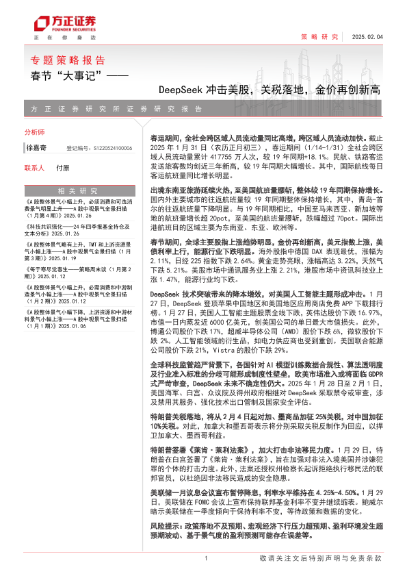 【方正证券】【20250218】春节“大事记”——DeepSeek冲击美股,关税落地,金价再创新高-15页